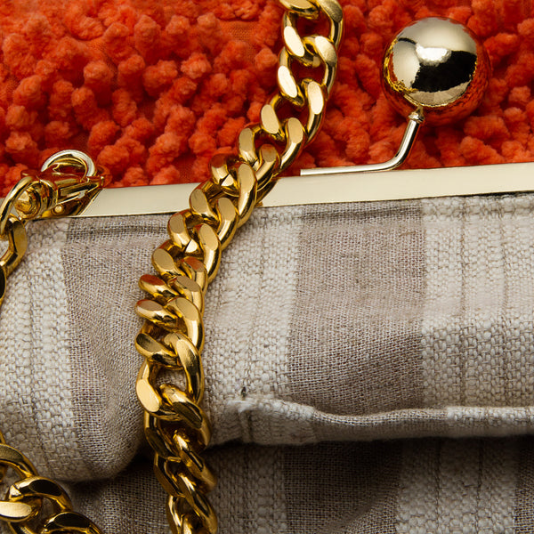 This baby is the perfect compliment to everyday wear with a polished metal clasp gives way to accessibility and a modern shape. It allows an easy transition from day to night with a detachable metal chain, giving optional appeal.